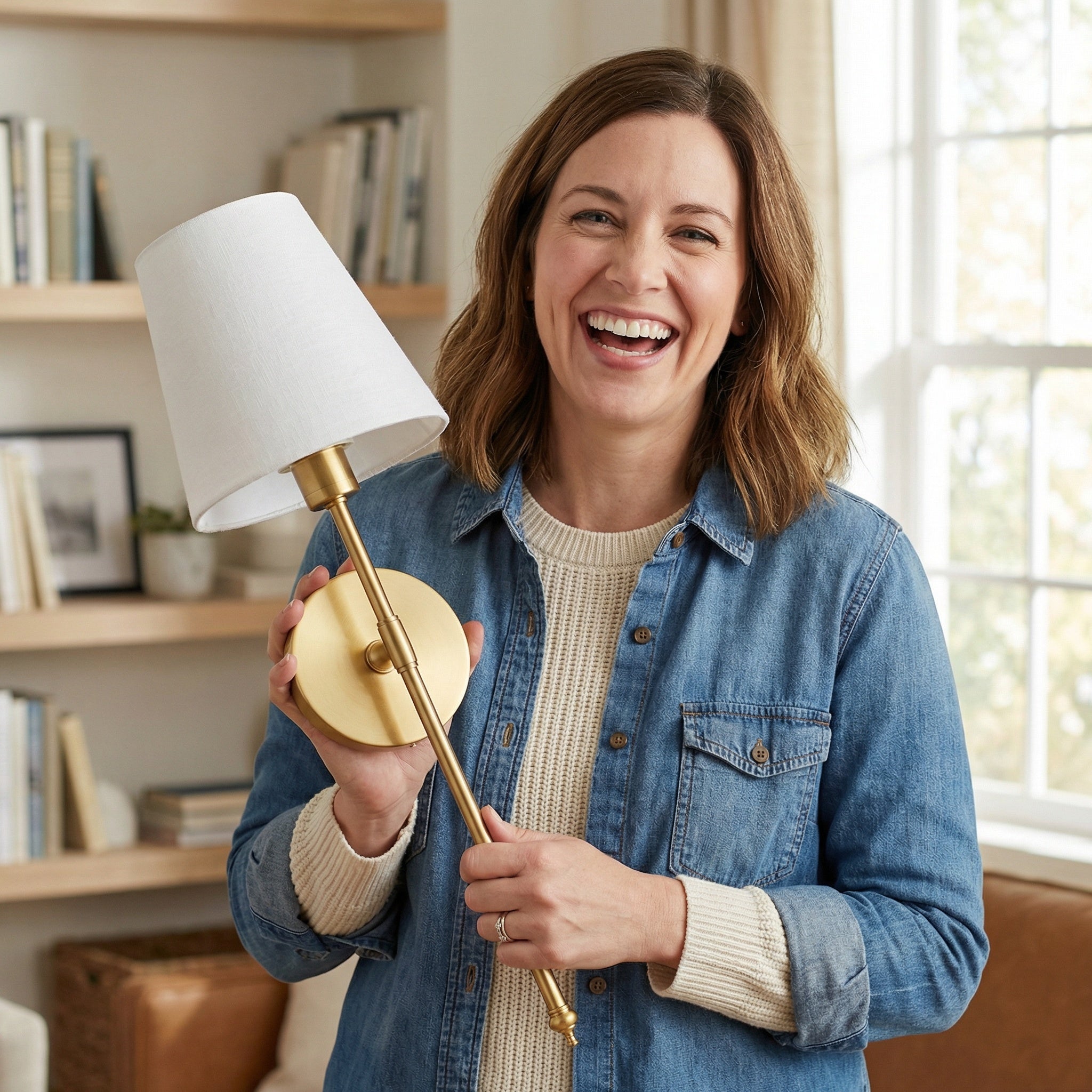 Yes. The soft white fabric shade diffuses the light beautifully, making it gentle on the eyes while still bright enough for reading.