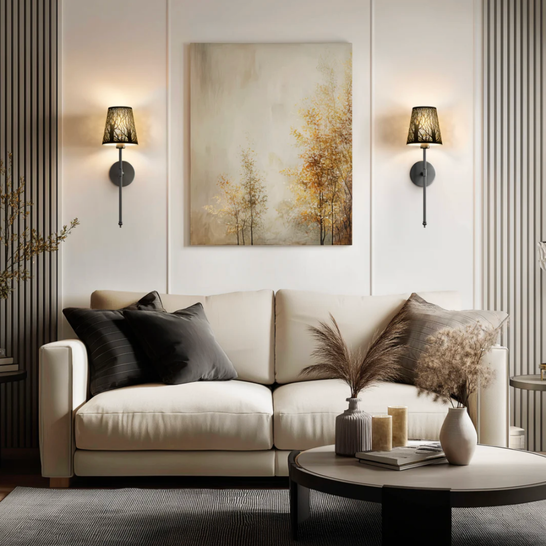 ""Such a nice upgrade for our space. The light is warm and flattering, and the sconces look like something from a boutique hotel. Our living room instantly feels more elegant.""